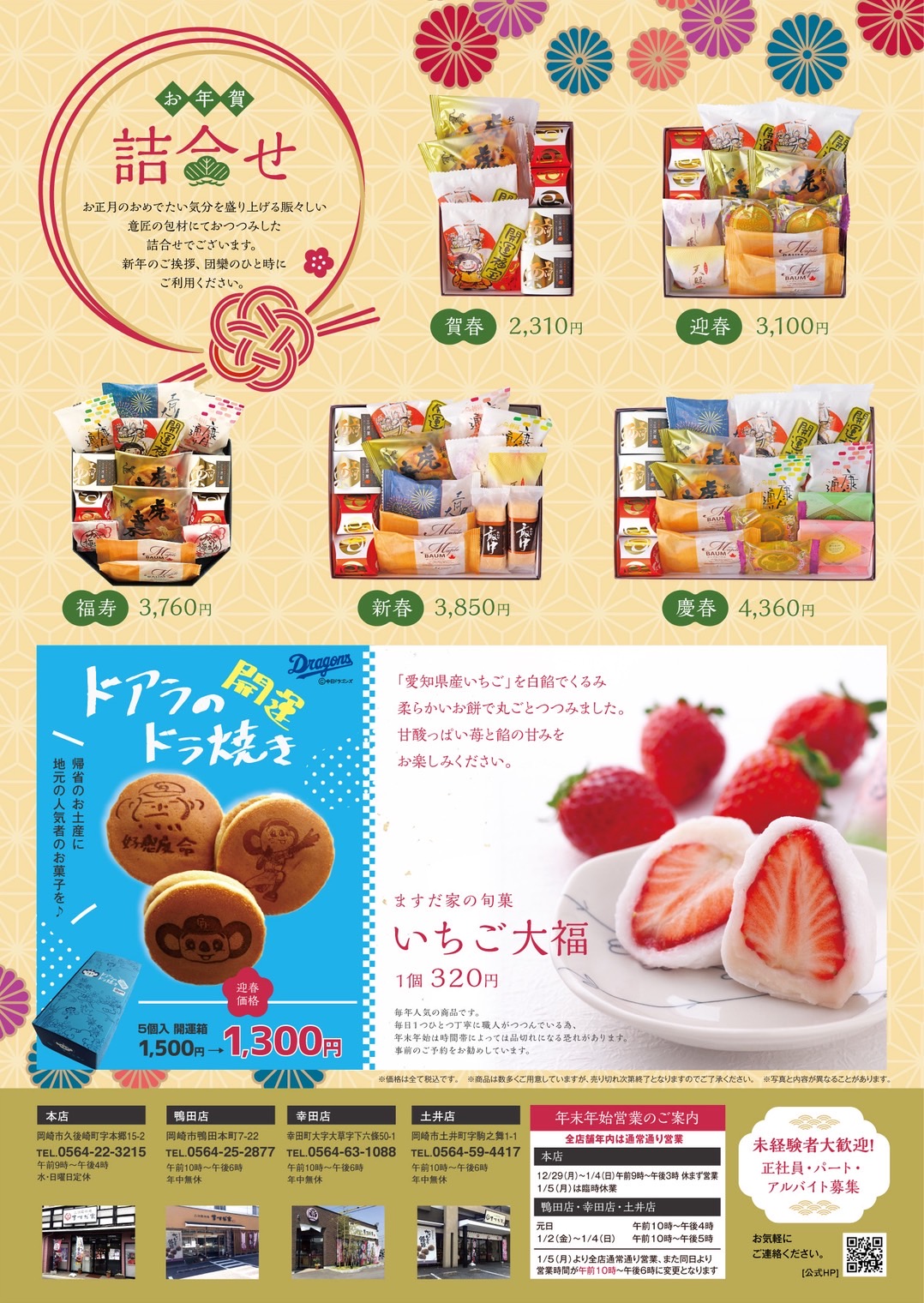 ますだ家の自慢の銘菓を迎春価格にてご提供いたします。